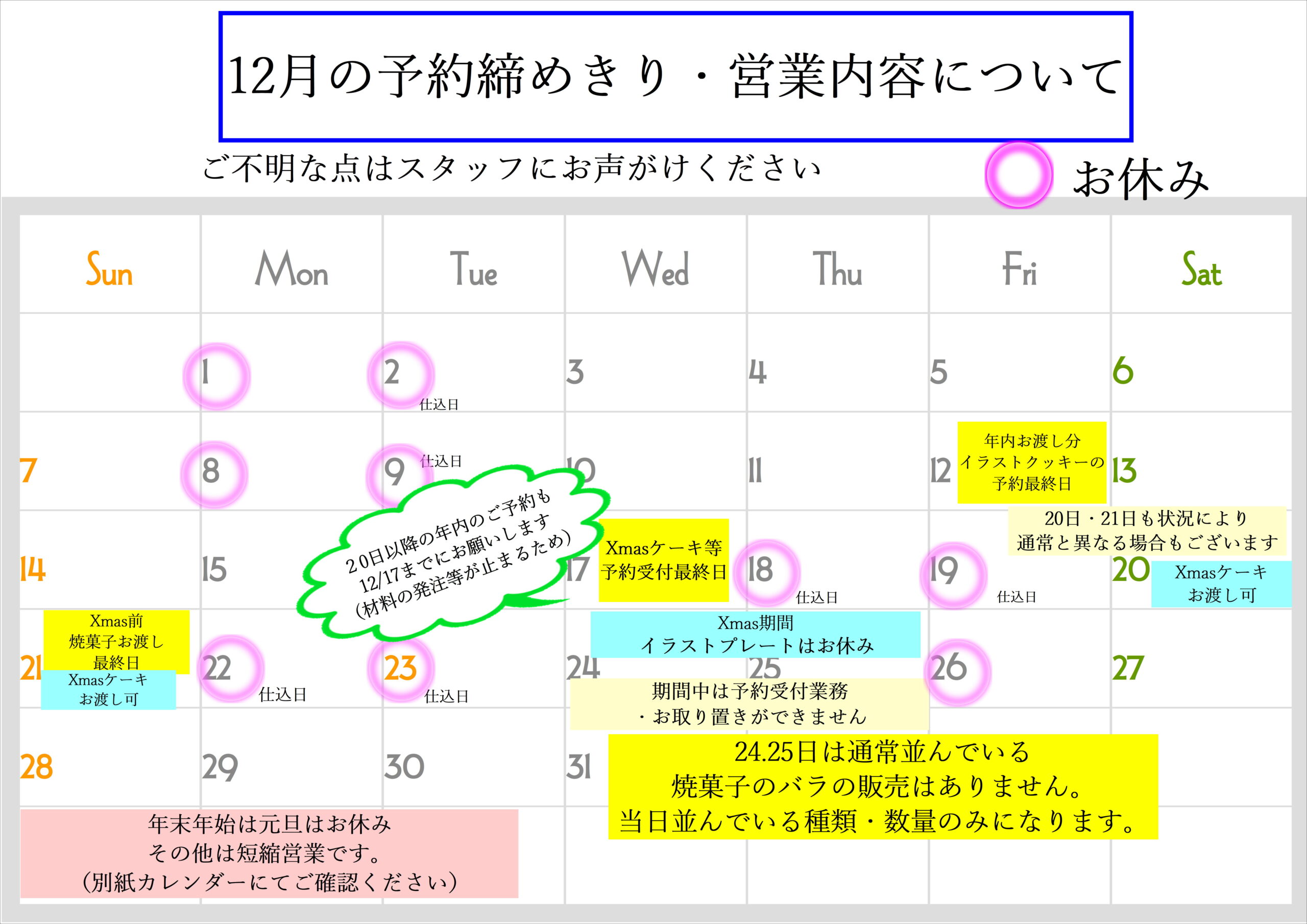 年始にケーキをお考えの方もお早めにお願いします(材料の発注等止まってしまいます)